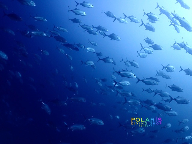 ただ、あんまり見え過ぎてギンガメアジもダイバーにべったりとは寄ってこない・・・