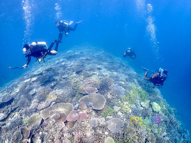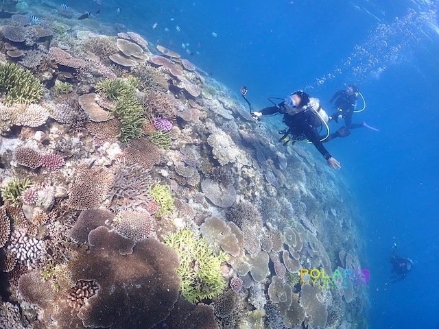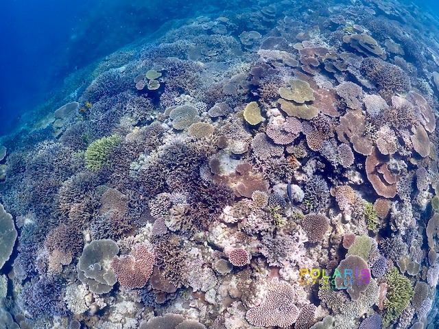 ここではテーブルサンゴや見事な枝状のミドリイシなどが豊富な場所