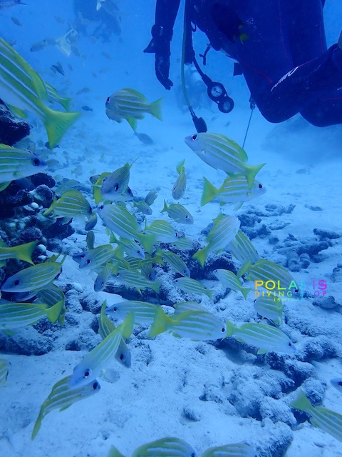 青い海に青い魚でちょっと見えにくいですね(笑)