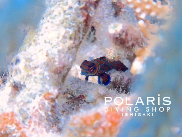 サンゴの下には可愛いサイズのニシキテグリの子供が!