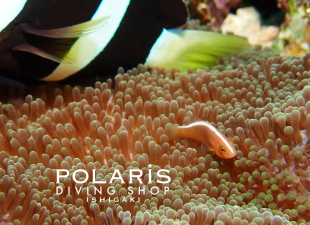 クマノミのペアが住むイソギンチャクにひっそりと同居していた、セジロクマノミのチビ。