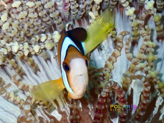 ふかふかじゅうたんの上でくつろぐクマノミは見ているダイバーをほっこりさせてくれます!