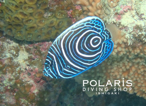 グルグル渦巻きで人気の子。タテジマキンチャクダイの幼魚です。