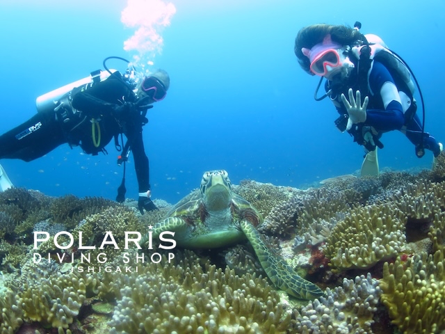 ダイバーになれたアオウミガメと写真を撮ってたっぷり遊んでもらいました♪