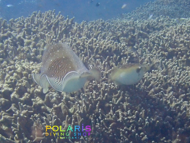 それを見て、なかなか勇気が出ないヤングコブシメ君は端っこでしょんぼり